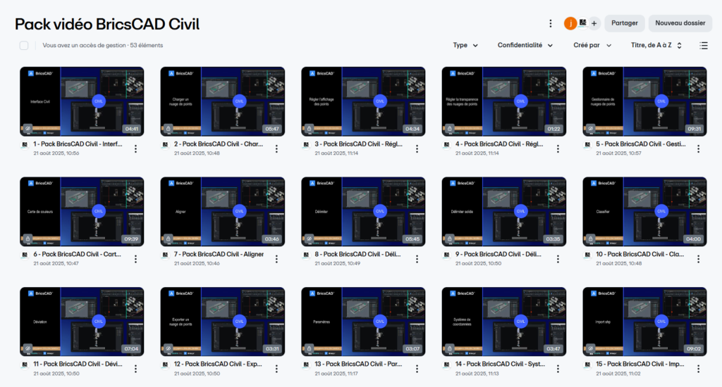 Liste des vidéos du Pack de formation BricsCAD Civil/Topo
