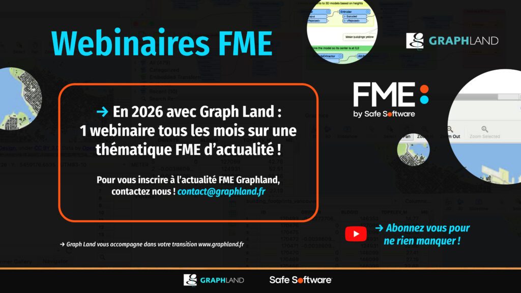 En 2026, Graph Land vous propose chaque mois, 1 webinaire dédié à FME ! Retrouvez les relpays sur notre chaîne YouTube : https://www.youtube.com/watch?v=E7tXXO6bQg4&list=PLMpIEVnyZGfacOQK2H1eDzwNySqy3AgxM